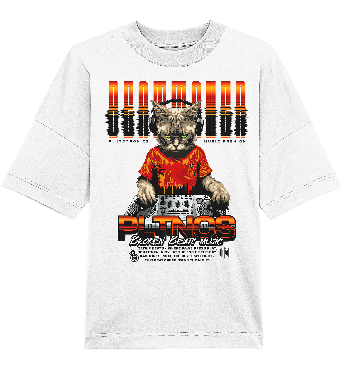 „CATNIP BEATS Vol 2“ bringt gute Laune auf Stoff: Ein DJ-Kater an den Plattentellern, der seine Broken Beats mit Hingabe serviert. Das farbstarke Motiv kombiniert Street-Art mit Sound – für Artists, die ihre Tracks mit einem Augenzwinkern droppen.