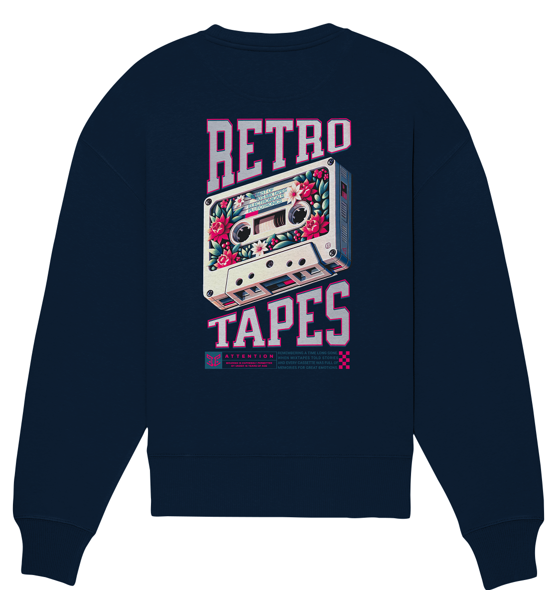 „RETRO-TAPES“ ist eine Hommage an die Zeit, als Musik noch auf Band lebte – und Gefühle auf Kassette konserviert wurden. Das Tape-Motiv erinnert an Mixtapes, die man für sich selbst oder für jemanden Besonderen aufnahm – mit Geduld, Timing und Hoffnung, dass der Radiomoderator den Moment nicht zerstört. Die pinken Elemente brechen die Nostalgie mit futuristischem Stil, der ironische Warnhinweis spielt mit alten Regeln und neuen Freiheiten. Für Artists, die beim letzten Schliff noch wissen, wie sich das Einrasten der Kassette im Recorder anfühlt, bevor man die Aufnahme drückt.